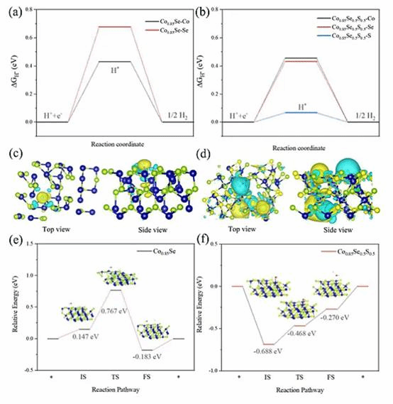 在一项近日工作中,钟文武教授将硫掺杂到石墨烯状的Co0.85Se中,发现活性位点被反转(从阳离子钴位点到阴离子硫位点),这有助于增强电催化HER性能。最佳的Co0.85Se的超电势为108 mV (10 mA/cm2),塔菲尔斜率为59 mv/cm2,超过了其他报道的Co0.85Se基电催化剂。掺杂的硫位比钴位具有更高的活性,氢吸附吉布斯自由能(ΔGH)接近于零(0.067 eV),这降低了制氢的反应势垒。这项工作为优化其他相关过渡金属硫属元素化物的内在HER活性提供了灵感。论文发表于Angew. Chem. Int. Ed., 2021, DOI: 10.1002/anie.202102961,为一区期刊,即时影响因子为12.9。申士杰副教授为论文第一作者,钟文武教授为论文通讯作者,台州学院为唯一通讯单位。